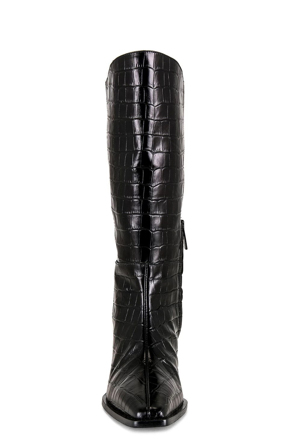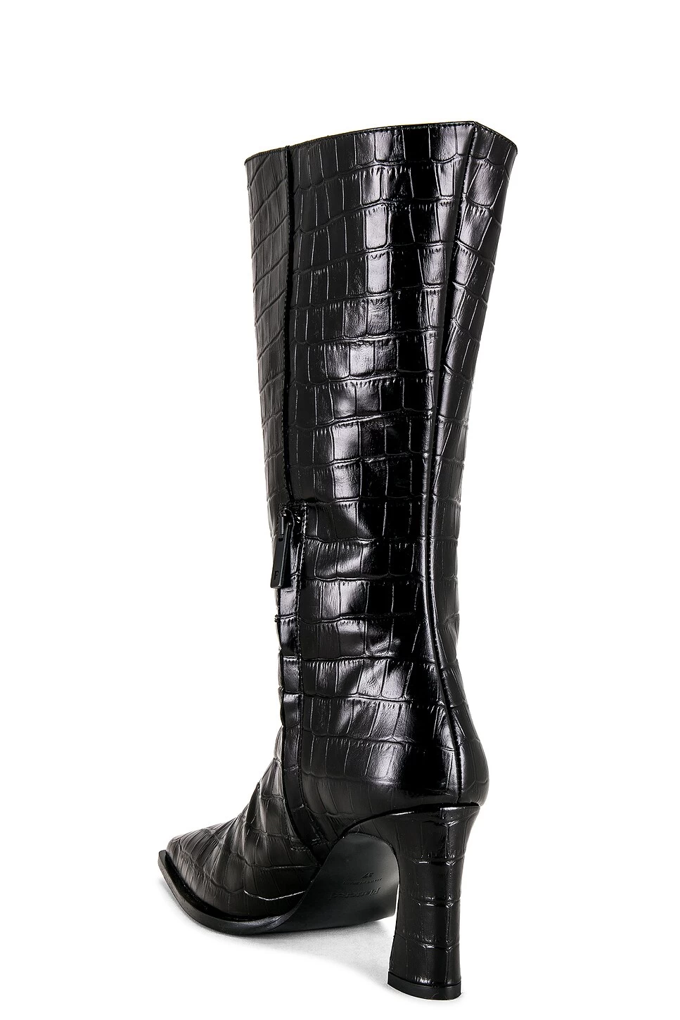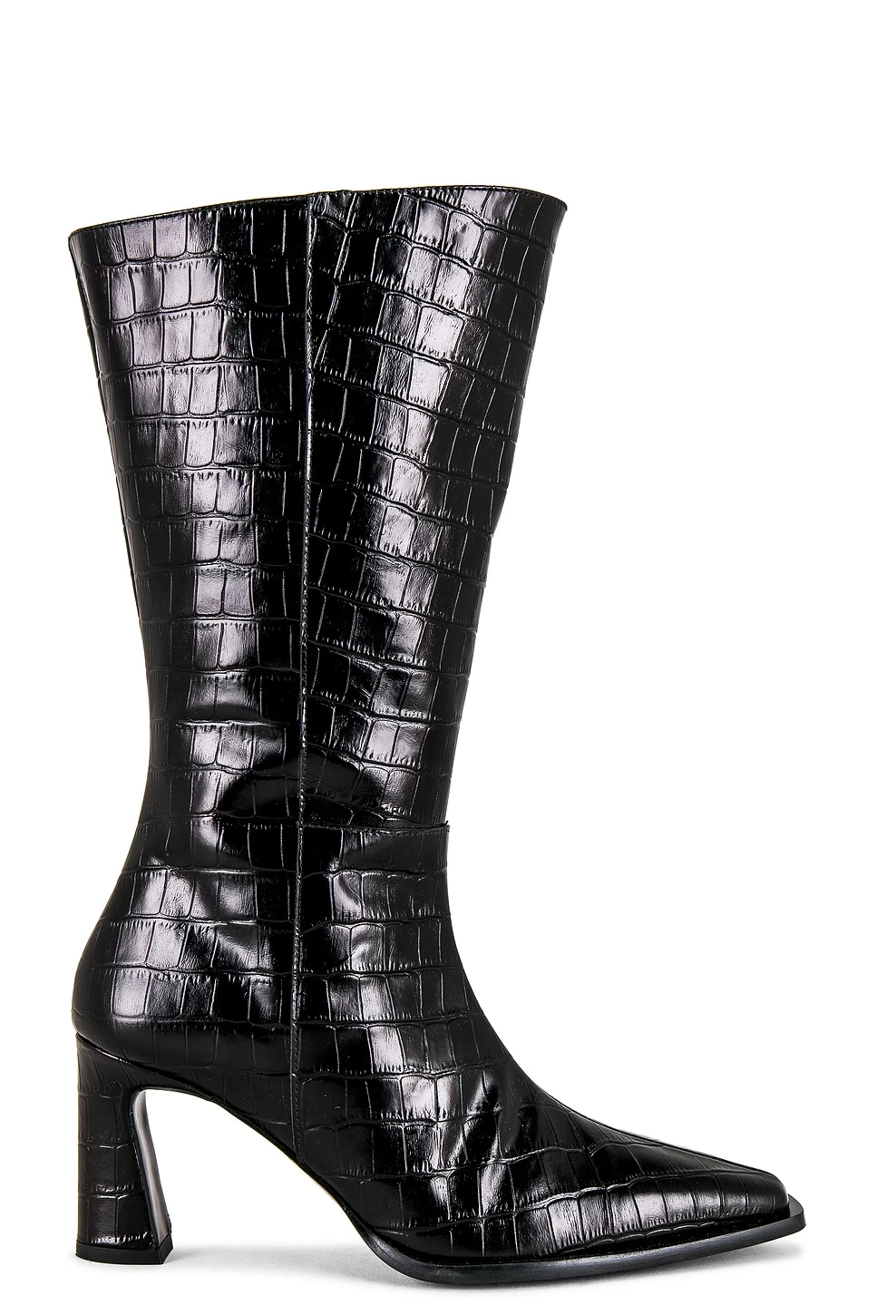 - Pointed square toe with subtly slanted heel