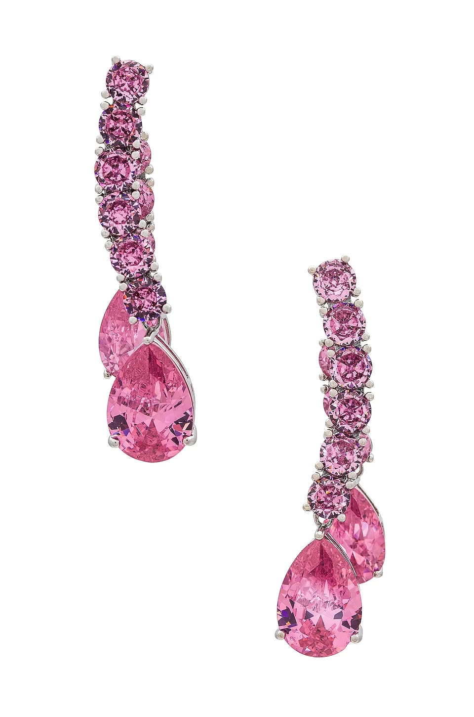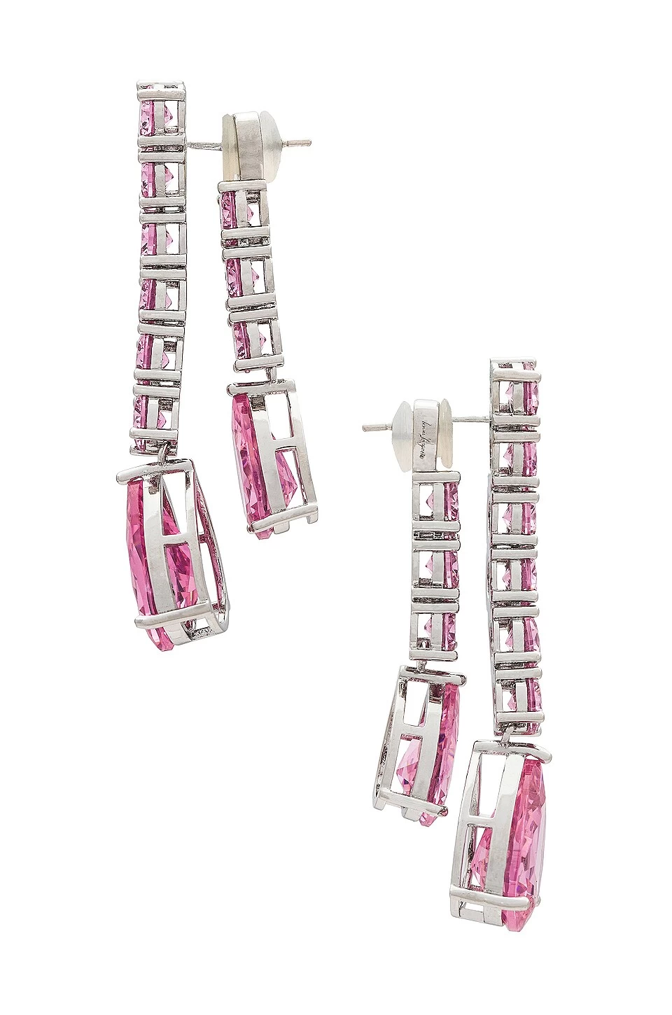 - Silver-tone metal with pink crystals
