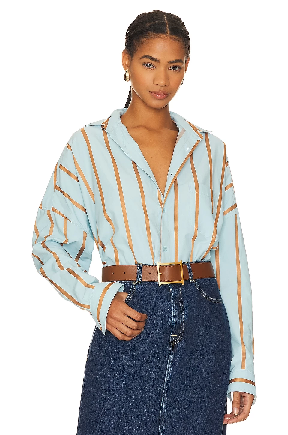 - Curved shirttail hem