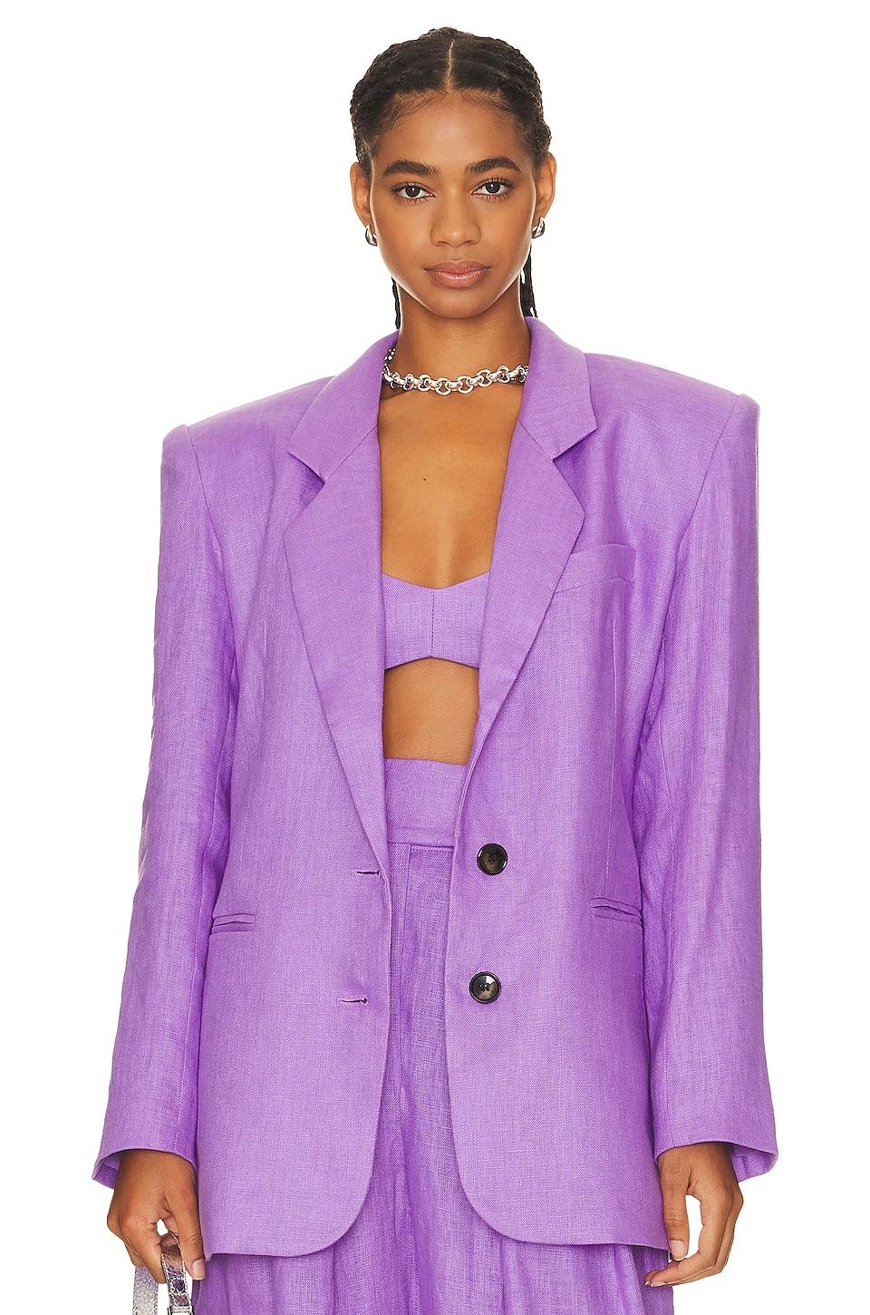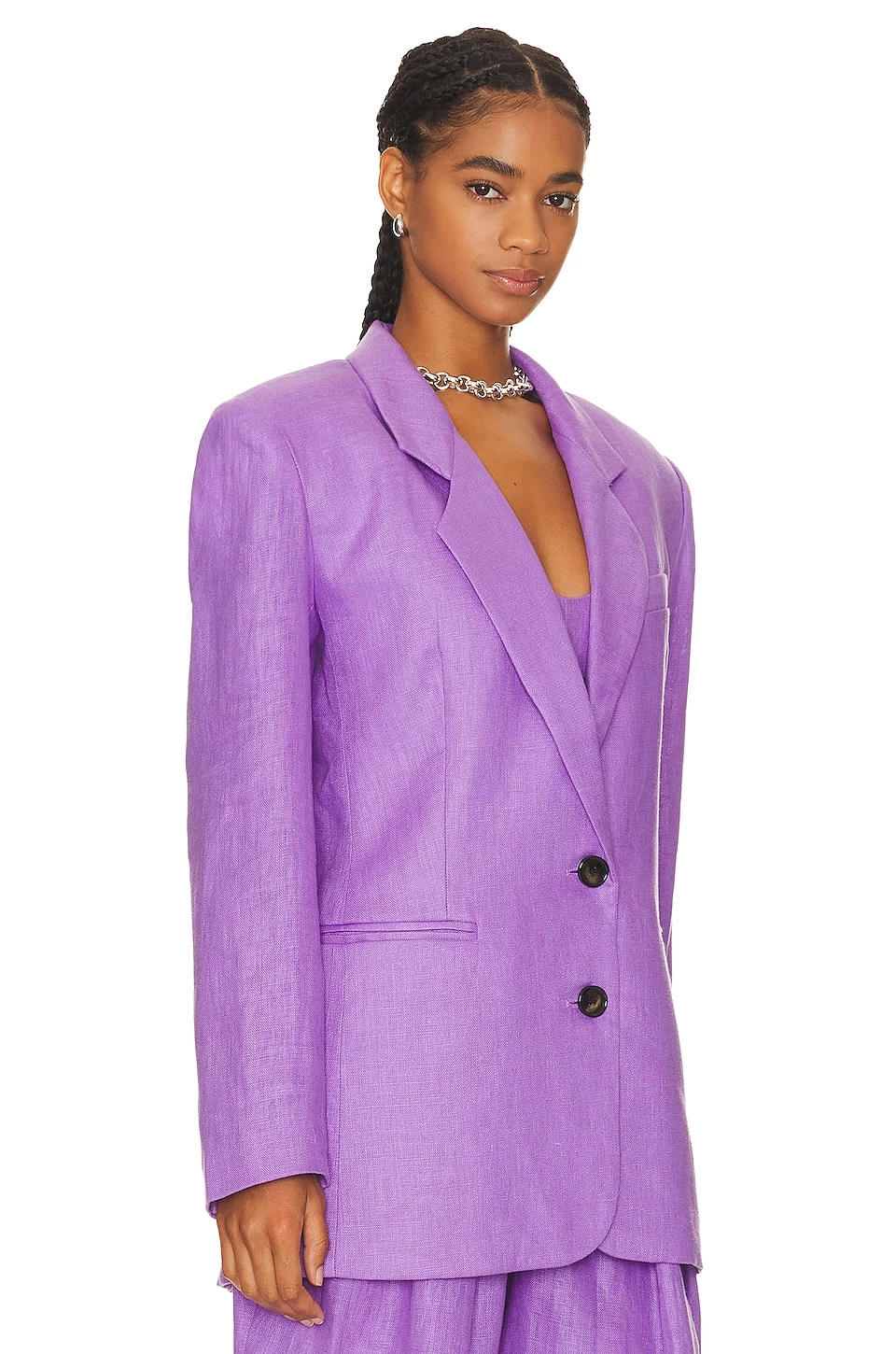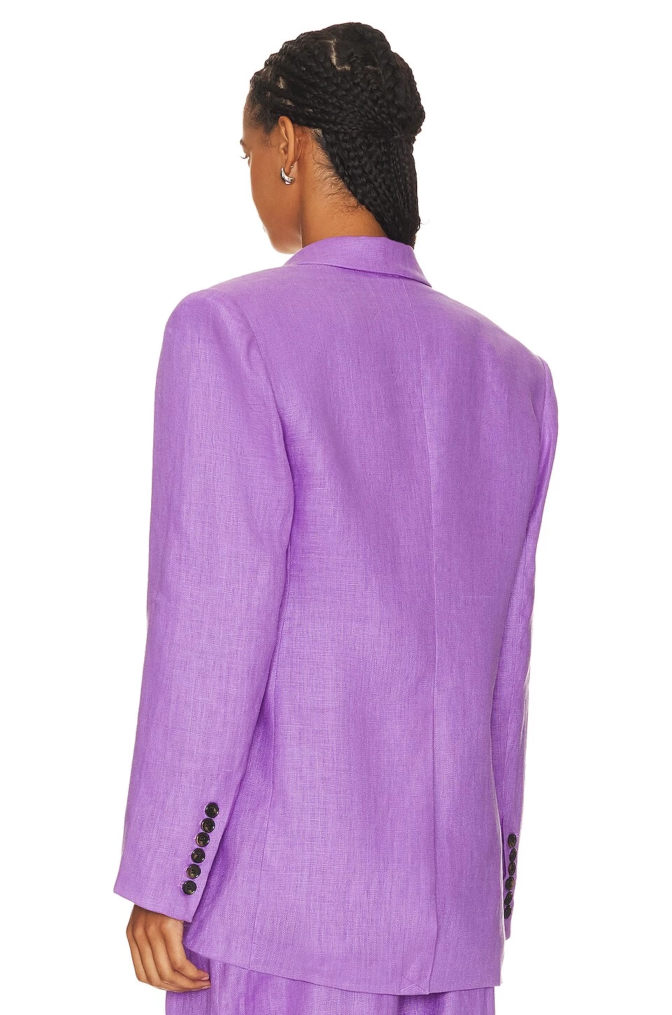 - Padded shoulders with buttoned cuffs
