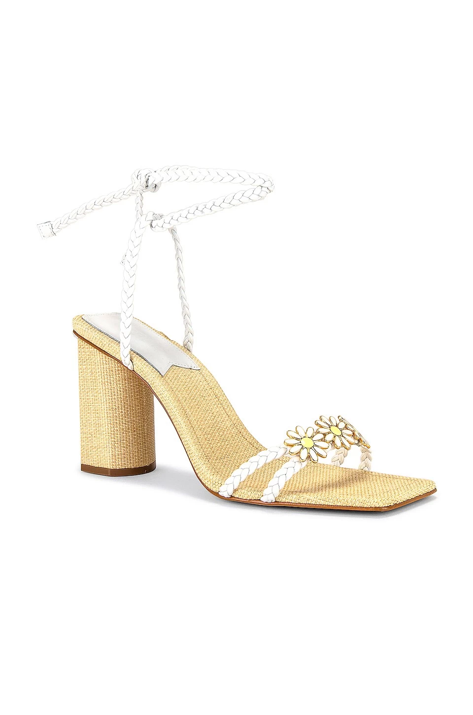 - Wrapped braided ankle strap with tie closure