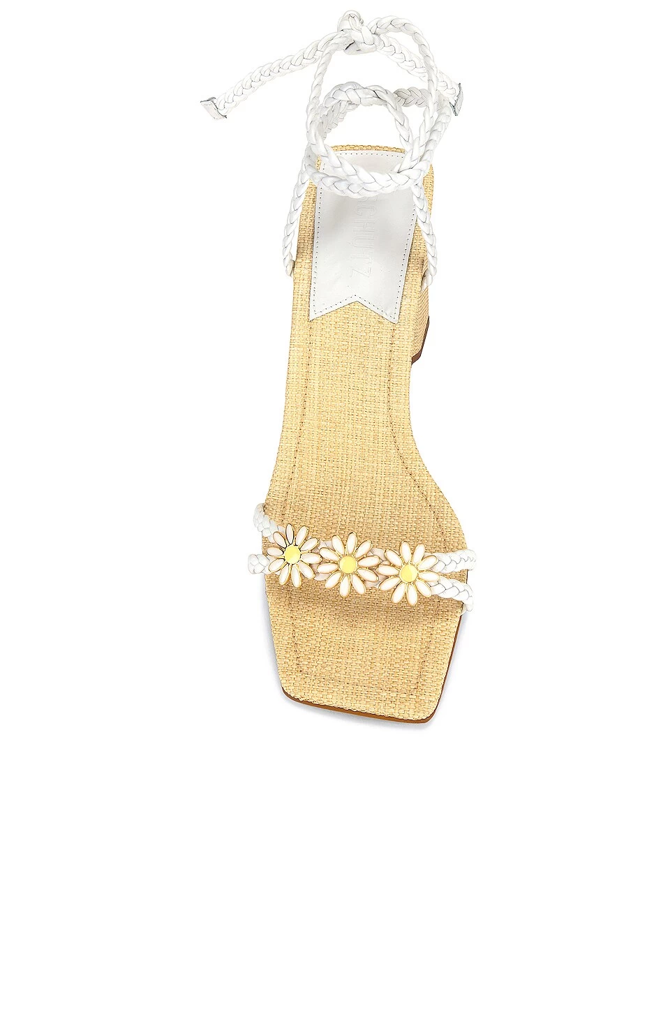 - Braided vamp with acrylic daisy accents