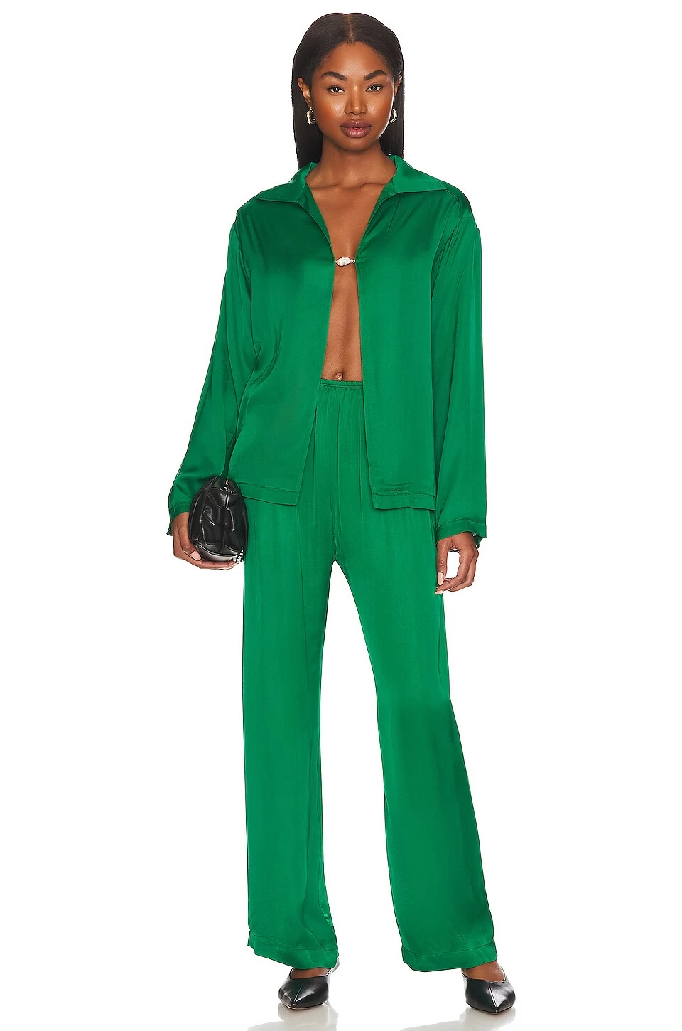 - Split front with hook and bar closure and pearl detail