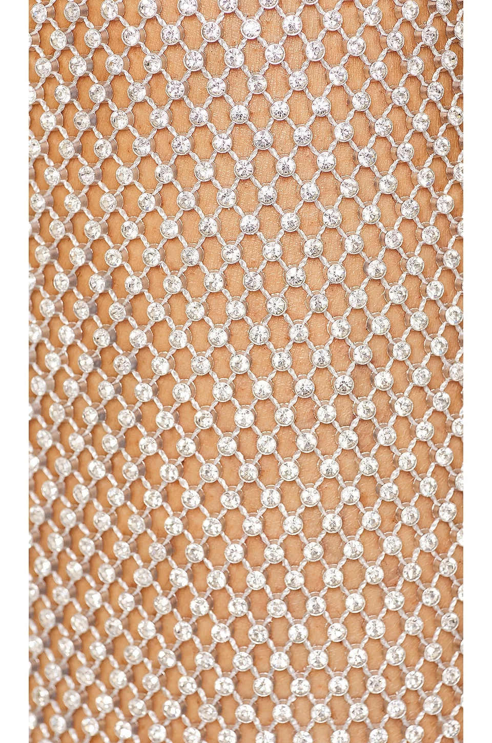 - Open knit fabric with tonal rhinestone embellishments throughout